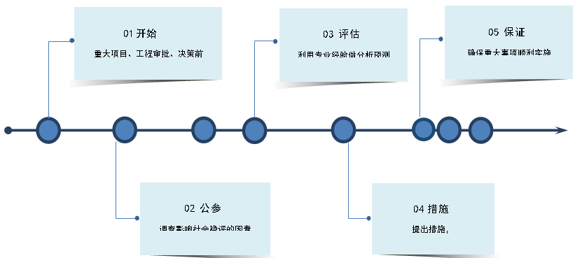 是指與人民群眾利益密切相關(guān)的重大決策、重要政策、重大改革措施、重大工程建設(shè)項(xiàng)目、與社會(huì)公共秩序相關(guān)的重大活動(dòng)等重大事項(xiàng)在制定出臺(tái)、組織實(shí)施或?qū)徟鷮徍饲?,?duì)可能影響社會(huì)穩(wěn)定的因素開(kāi)展系統(tǒng)的調(diào)查,科學(xué)的預(yù)測(cè)、分析和評(píng)估,制定風(fēng)險(xiǎn)應(yīng)對(duì)策略和預(yù)案。為有效規(guī)避、預(yù)防、控制重大事項(xiàng)實(shí)施過(guò)程中可能產(chǎn)生的社會(huì)穩(wěn)定風(fēng)險(xiǎn),為更好的確保重大事項(xiàng)順利實(shí)施。